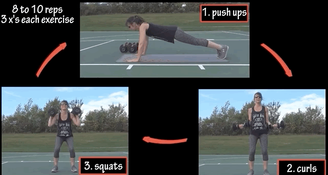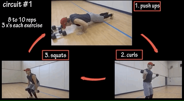 每个练习都是一个循环训练,一个接一个,练习之间很少休息。通常,在一个循环中会有8-10个练习,尽管这个数字会根据你的时间而变化。