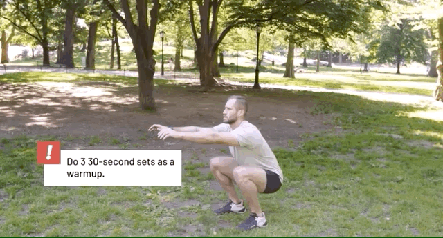 像所有的运动一样,当你做徒手深蹲时,你应该采用正确的姿势,这样你就能得到适当的好处,而不会伤到自己。这意味着首先要做拉伸和热身运动,即使你只做深蹲,这也是很重要的。