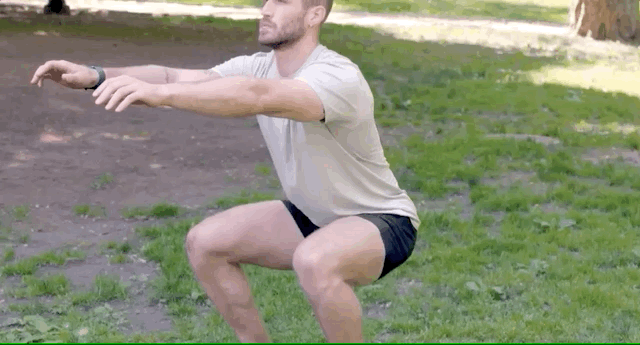 总的来说,徒手深蹲有助于建立一个坚实的力量基础和下半身的平衡。这个动作针对你的大腿、腘绳肌、股四头肌,特别是臀大肌,帮助你增加这些区域的肌肉质量。