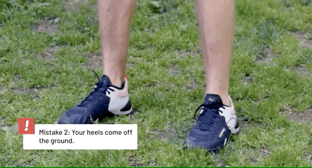 另一个要避免的关键错误是提起脚跟,这样你所有的平衡就会向前倾到你的脚趾上。