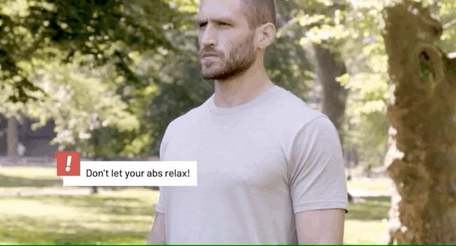 收紧你的腹肌,然后把你的肩膀向后转动,保持它们的力量,站直。这种紧绷感是保持蹲姿的关键。