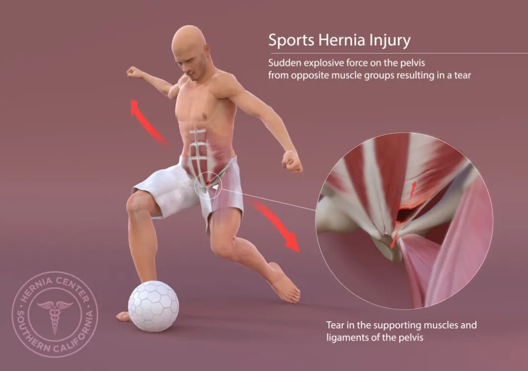 在被诊断患有慢性腹股沟拉伤的患者中发现了运动性疝气。运动性疝气是一种类似于一般性腹股沟疝(Inguinal Hernia)的病症,是由于形成腹壁的肌肉变弱所致。