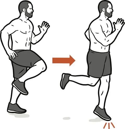 然后弯曲左膝向前跳,左脚前掌着地,接着用同一只脚迅速地再次向前跳跃,做10次,然后换另一条腿重复。