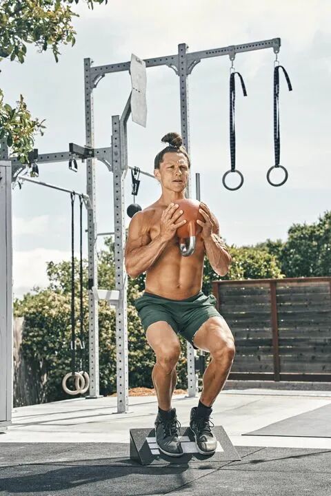 “1-1/4深蹲是指你在下蹲的过程中做一个完整的重复动作,在上蹲的过程中做四分之一到一半的动作,然后再慢慢蹲下(持续3秒),接着再站起来。”Filly 说,“你可以用杠铃片或其他东西把脚跟垫高,通过增加单次运动的范围,我们可以在这个姿势下感受到更多的刺激,你可以练习3组,每组重复8-10次。”