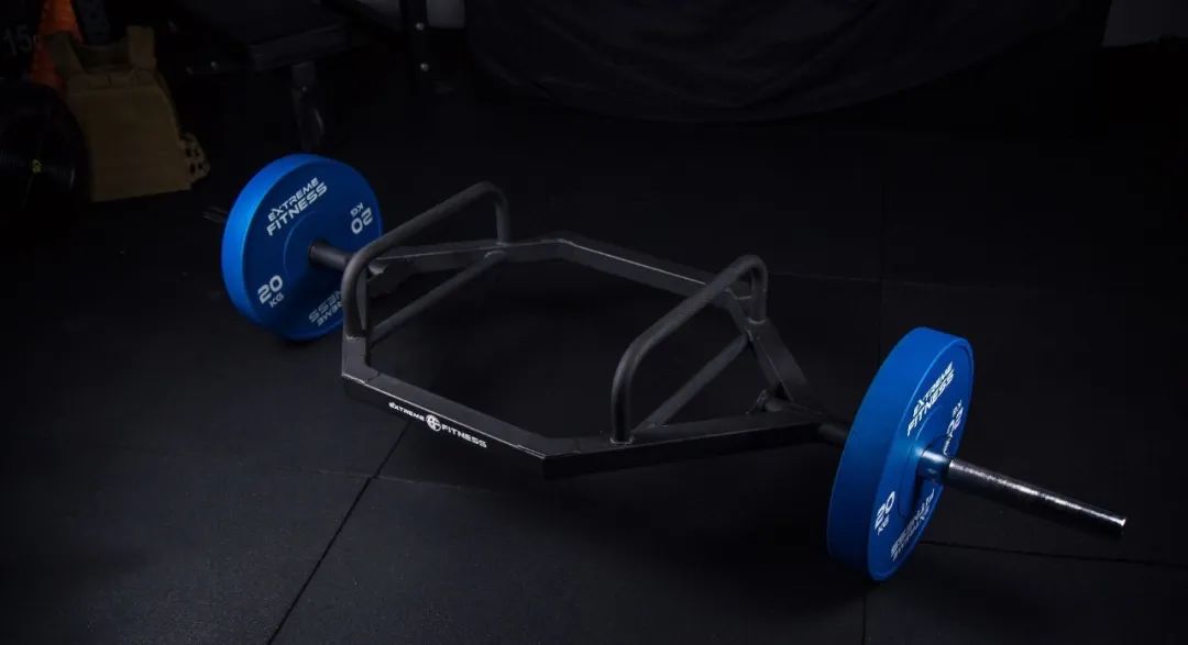 六角杠铃的样子如上图所示。六角杠铃硬拉常被视为初学者的练习,并不是因为这个运动很初级,而是因为它是一种很有用的教学工具。与传统杠铃相比,用六角杠铃做硬拉会让人感觉更自然,这主要是因为在杠铃上下的过程中,练习者不用刻意强调腿和杠铃之间的关系。而且,由于手臂自然地置于身体两侧,这与平时拎东西的习惯也相符。