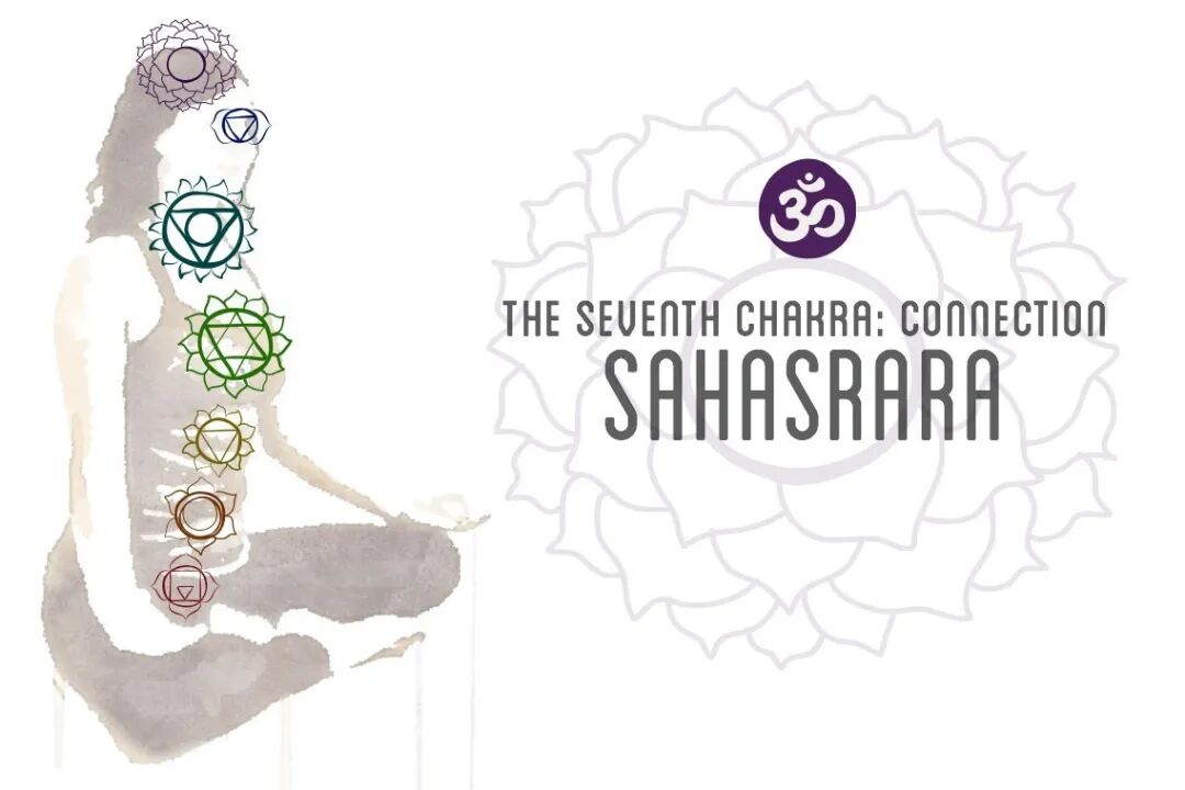 7、Sahasrara脉轮由盛开的千瓣莲花组成(关键词"connection",连接),是第七脉轮,位于头顶。
