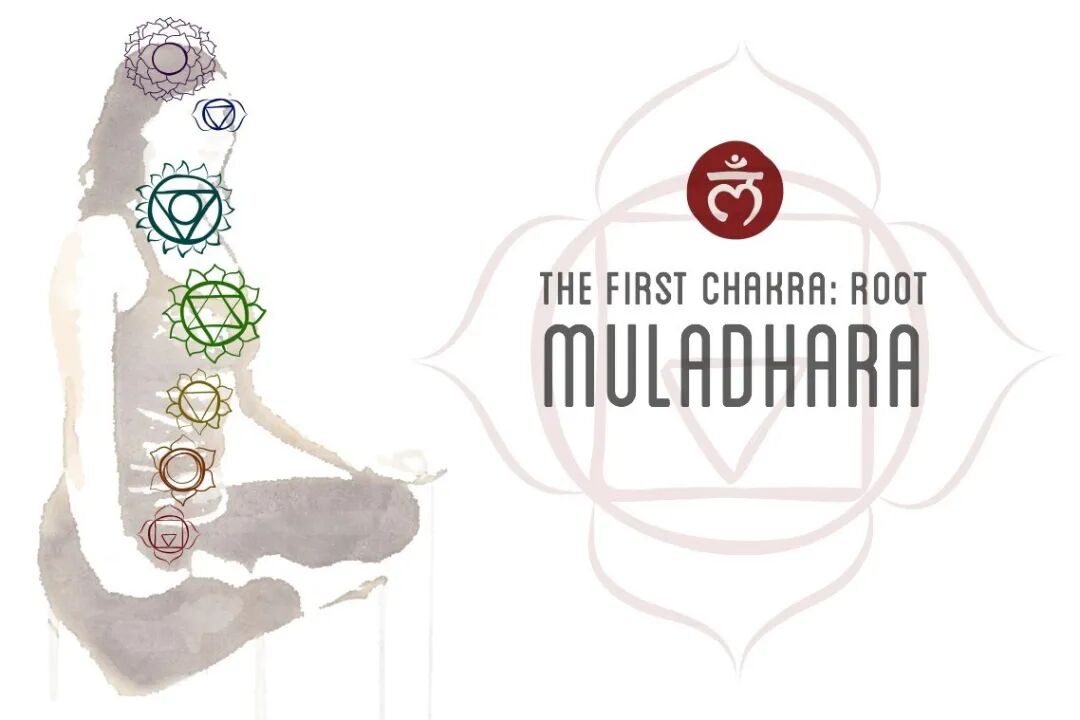 1、Muladhara也被称为根脉轮(关键词"root",根),位于脊柱底部,以红色和四瓣荷花为象征。