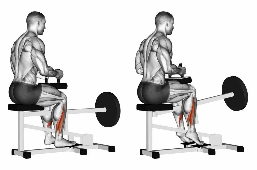 当比目鱼肌和腓肠肌一起工作时,可以通过弯曲膝盖来强调比目鱼肌。当膝盖弯曲时,腓肠肌处于半放松的位置,对跖屈的贡献不大。