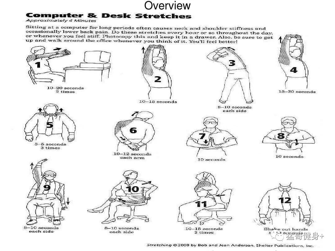 人的大脑只占体重的2%,却要消耗20%的氧气,因此长时间坐办公室用脑过度的健身者会特别容易疲倦。建议在工作时间每隔30分钟休息15秒,站起来转一转腰,做几个扩胸运动,眼睛看看窗外等都可以缓解疲劳,这样在工作之余才有精力和体力去健身训练。