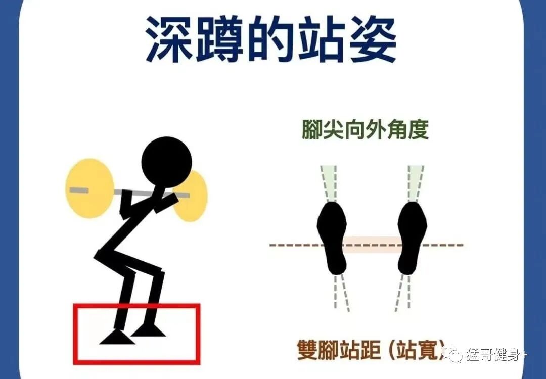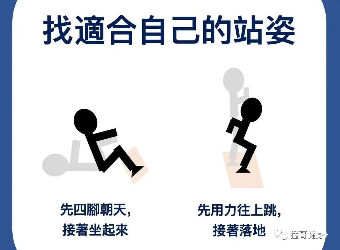 通常来说,身体为了承受跳起并落地时可能达到的10倍以上的体重冲击力,会自然在落地时摆出能承受最大重量的站距和姿势,那么这个落地时的站姿就是深蹲时最合适的站姿。