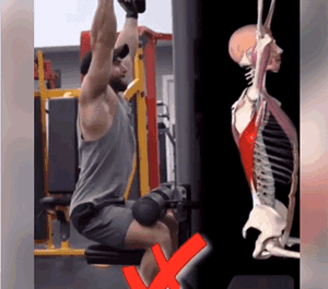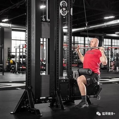 健身老手训练时可以使用大重量做高位下拉,但需要注意臀部不要离开凳面,一旦臀部上下移动,背部肌肉收缩就会不到位,而且腰部、髋关节参与动作代偿,更容易伤腰。