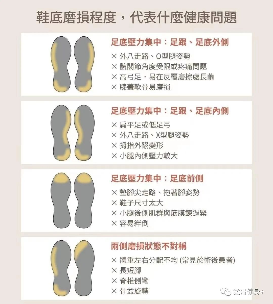 你观察过自己的鞋底吗?从鞋底磨损的状态可以看出身体可能有的体态问题。