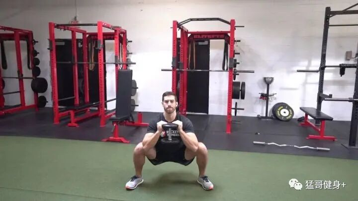 调整站姿,找到自己觉得最自然的状态,首先双脚分开与肩同宽,然后逐渐向外移动,直到自己感觉合适为止。在整个深蹲过程中,脚跟始终与地面接触,踝关节的灵活性是保持形态和稳定性的关键;保持脊柱中立或稍微伸展,不要弯腰驼背或耸肩;当下蹲时想像你要坐下一样,当膝盖承受的压力增加时不要向前推膝盖;在没有代偿的情况下,下蹲到一个可以安全控制的深度。深蹲时常见的代偿包括膝关节外翻、下背部弯曲或拱起、躯干过度前倾、脚过度外旋或内旋。