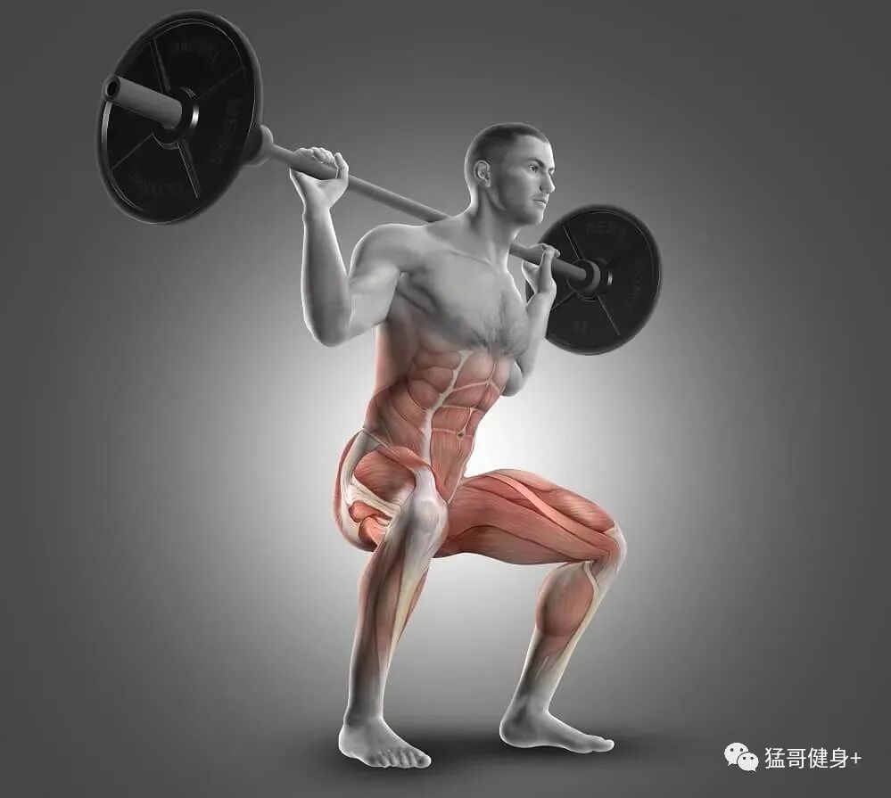 深蹲时所涉及的肌肉组织众多,其中包括臀大肌、股四头肌两个主动肌,协同肌有股二头肌、腘绳肌、竖脊肌、内收肌、小腿腓肠肌和比目鱼肌,维持稳定的肌肉有腹横肌、腹内斜肌、骨盆底肌、腹直肌和腹外斜肌,这些肌肉组织都参与了深蹲的动作过程。