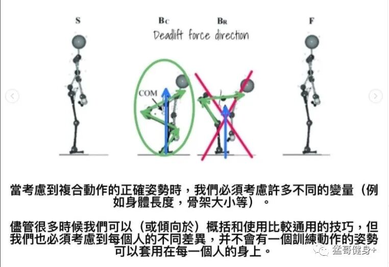 尽管很多时候可以(或倾向于)概括和使用比较通用的技巧,但也必须要考虑到每个健身者的体型差异,并不会有一个训练动作的姿势可以套用在任何一个健身者的身上。