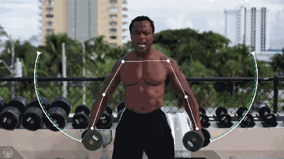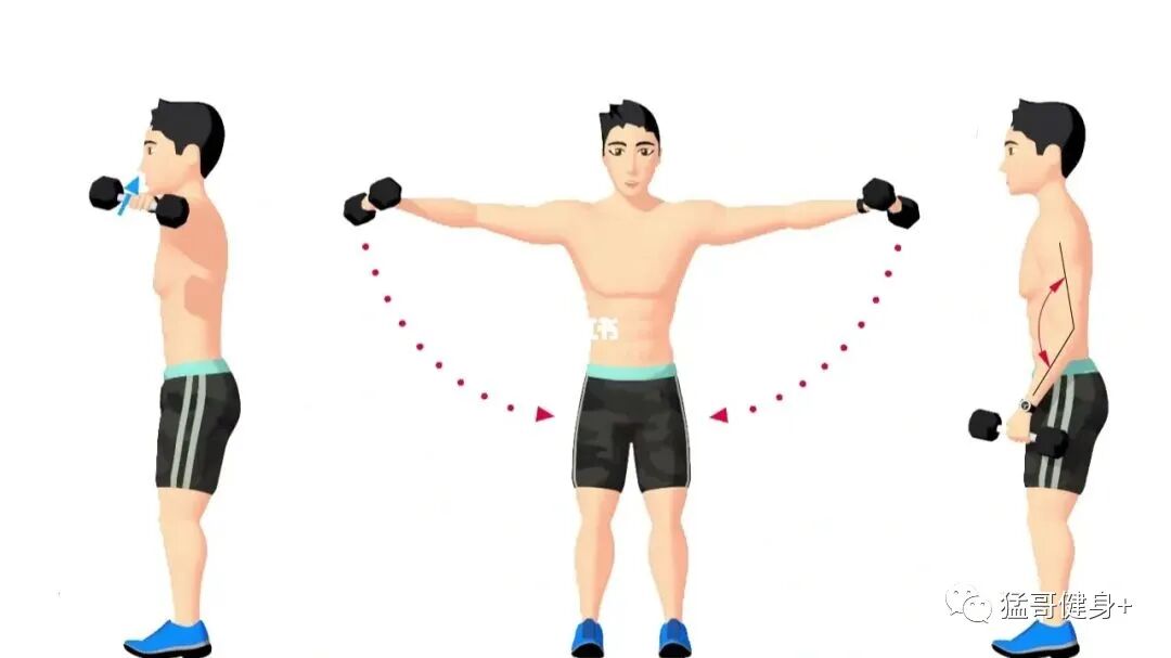 找准哑铃的运动轨迹很重要,是保证孤立训练三角肌中束的重中之重。