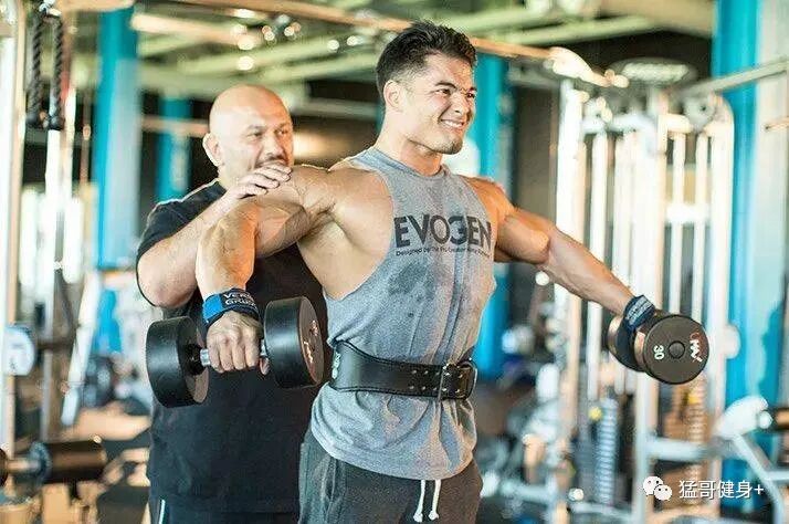 大部分健身者用哑铃侧平举练习三角肌中束时,为了追求更强的肩部刺激而选择过重重量,导致上斜方肌过度借力,有时前几次动作还能保持一定的标准,后几次动作做不动时,需要前后摆动身体强行完成,虽然看起来很辛苦,但对三角肌中束的刺激真的是少之又少。