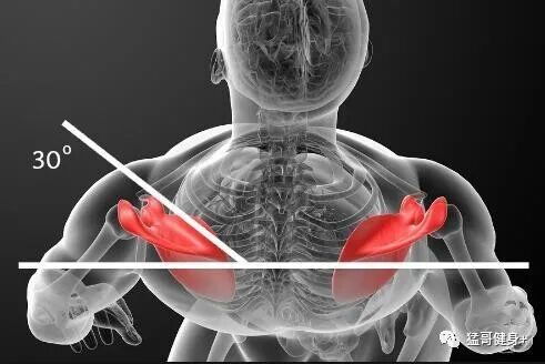 正确的运动轨迹应该是:让手臂后收,夹紧肩胛骨,内收下放30度左右,然后再进行动作。这样做的目的就是让动作平面在肩胛骨上,在尽可能孤立三角肌中束发力的同时,避免了肩峰撞击和上斜方肌的参与,既安全又有效。