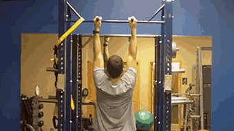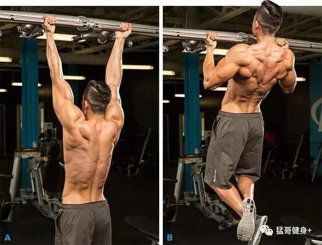背部训练代表动作之一,利用自身体重来针对背部肌肉的刺激。引体向上动作的变式众多,每个不同的变式都会有其独到之处:宽握有助于发展上背;窄握或者中等握距则偏向于整体。训练时选择不同的变式动作,背部刺激会更加彻底。