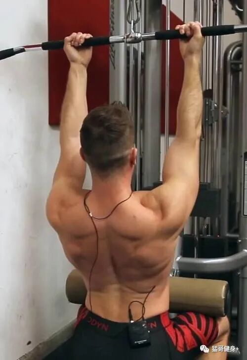 在初期训练高位下拉时,如果感觉手臂很酸,而背部感觉不强烈的话,可以改变握杆的方式,采用开握的握法(如下图),这样可以很大程度上避免手臂过度发力。