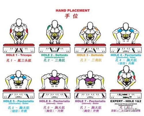 俯卧撑的姿势有很多,根据双手之间的距离通常可分为超宽、宽、中、窄四种,分别锻炼不同区域的肌肉。比如说超宽距俯卧撑,主要锻炼胸大肌外侧和肱二头肌;中距俯卧撑主要锻炼胸大肌中部。