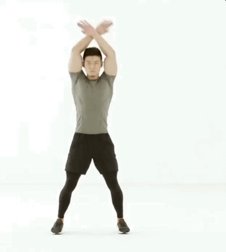 注意:双手交叉这一点随意,如果只是像“大”字一样跳也可以,另外如果习惯掌心相对做一个击掌动作也没问题。