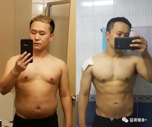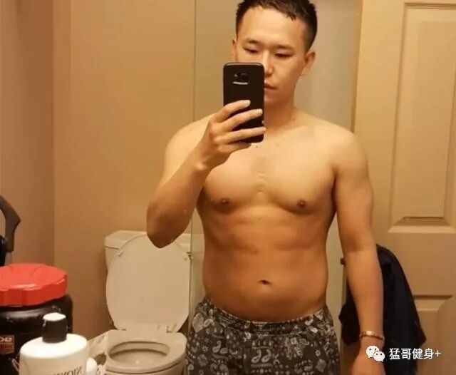 健身3个月时间,体重总计减掉了16斤,虽然体脂率依然比较高,但可以发现其腹肌已经隐约可见了。
