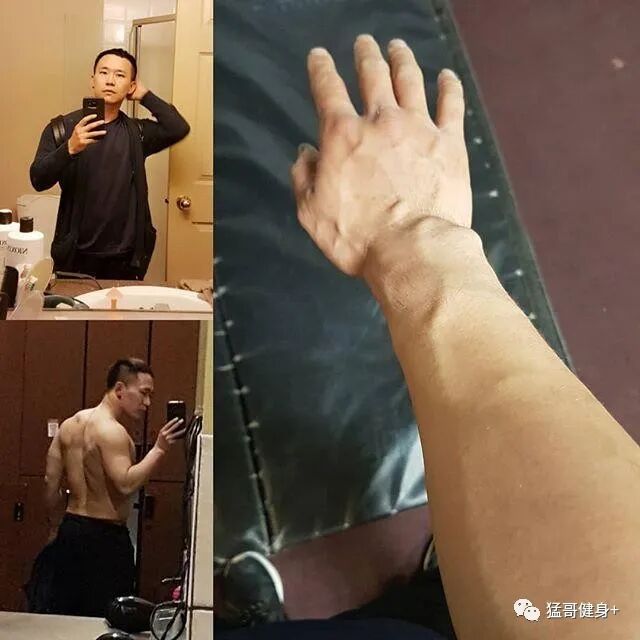 健身5个月的状态,他终于发现自己的手臂能看到一些血管了,背部肌肉也更强壮,体脂率降低到15%左右。