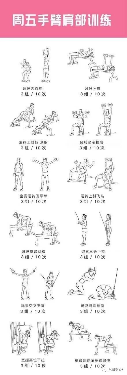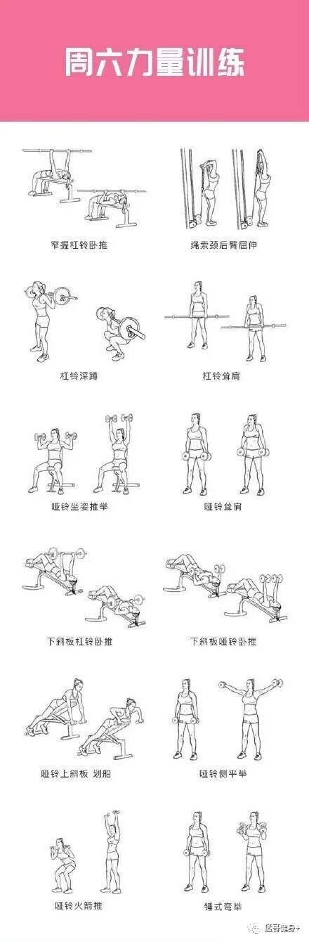 一套每周训练计划动作图解,如果不知道每天练什么可参考