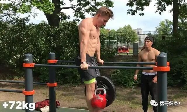 不得不说其力量增长的确相当快速,如今可以负重70公斤做双杠臂屈伸和引体向上,对他来说并不是难事,一次可以做5个,最高能负重105公斤做双杠臂屈伸。
