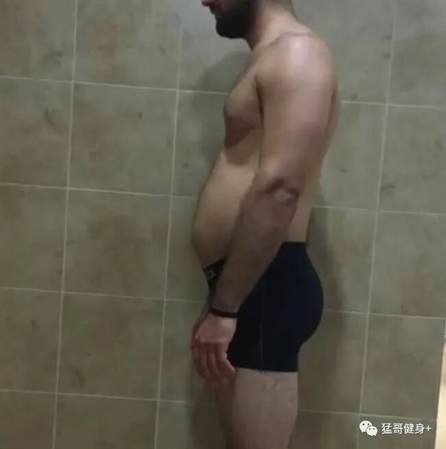 他的四肢、臀腿都是很正常的,和不胖的人没有任何区别,但是看看他的腹部就明白了,整个突出来了。