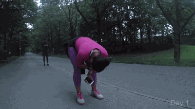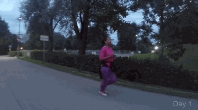 长期没有运动的她,最初跑5分钟都累得气喘吁吁,手叉腰不停地喘着粗气,很明显她的确高估了自己的体能。跑步5分钟,就想放弃了,有点想吐又吐不出的感觉,只能走路了。