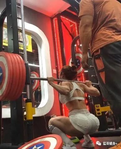如果问她的肌肉为何这么强壮?看看她的深蹲就知道了,一边上5个片,就算男生也很难做到。大重量训练对臀大肌和股四头肌有更好的刺激,她的臀桥重量高达140公斤。