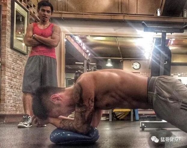 施瓦辛格曾说:评价胸肌就是当你把手臂举起来时,还能不能看到胸肌。很显然余文乐的胸肌很强壮厚实,即使将手臂举起来也可以看到胸肌,这离不开他千锤百炼的俯卧撑训练。
