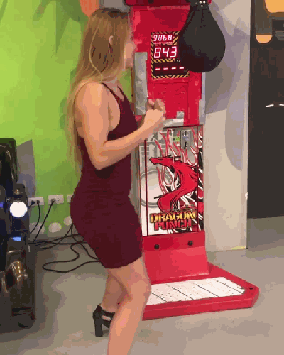 很多MMA运动员,他们的胸大肌和手臂肌肉并不是那么突出,还有一些女子即使体格很小,一旦学会如何发力,照样能在拳击机上打出千钧的力量,不输男子。(图中女子数据为8830,最高纪录为9868)