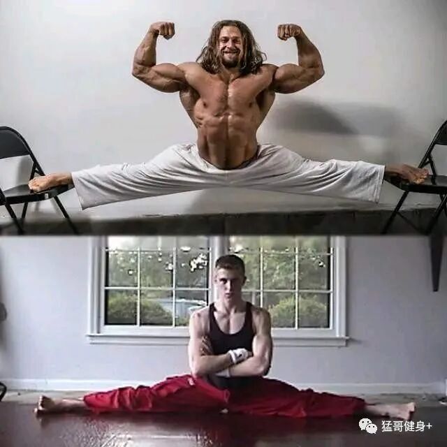 肌肉围度大的健美运动员经常可以看到,但肌肉版的一字马并不是人人都能做到。