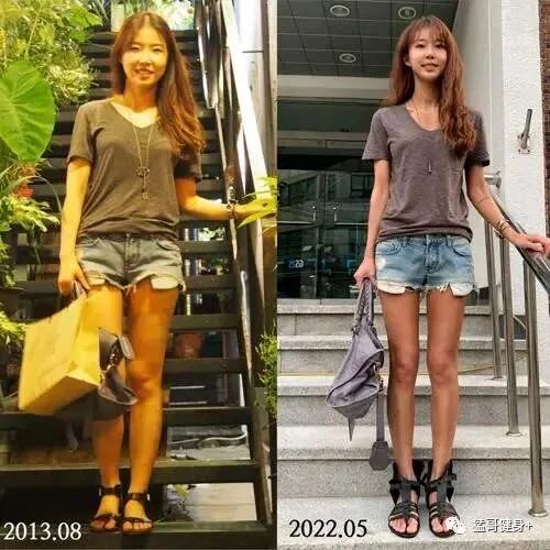 这是vivian的一张对比照,2013年的时候她看上去就很瘦,但脂肪偏多,线条感也不好。9年间,她每周都会进行力量训练,不仅提高了基础代谢,而且身材曲线也越来越好。