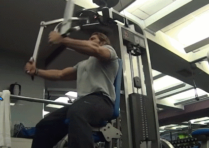 调整座位高度,使把手与肩在同一高度,双臂保持微弯状态,注意双臂不要过度打开,以免伤到肩关节,重量不要太重,内收时做顶峰收缩,停顿1~2秒,充分挤压胸大肌内侧。