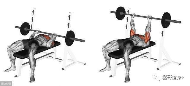 杠铃卧推主要参与肌群有胸肌,三角肌前束,肱三头肌等。
