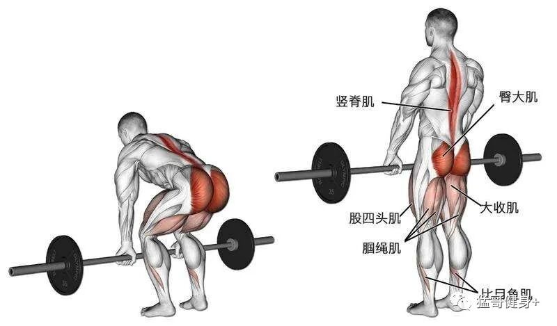 硬拉主要参与肌群有竖脊肌、背部肌群、臀大肌、股二头肌等。