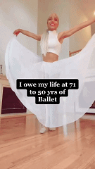 这位71岁的银发女士名叫Keiko Guest,来自美国佐治亚州,身穿露脐装白色半身裙翩翩起舞,简直就像妙龄少女,71岁能把身材维持得这么好,太不可思议了。