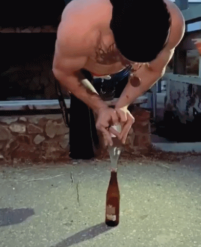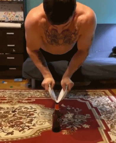 他的训练总是会有一些稀奇古怪的动作,普通人做俯卧撑会选择在平地上,而他竟然是在瓶子上做,相信没有多少人能做出这个动作。