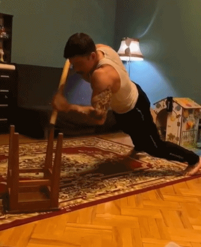这些仅仅是他的日常,为了增加难度,他可以在盘子上做俯卧撑。