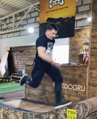 他可以把任何东西变成训练器材,偶尔也会尝试户外训练,听上去更像是街头健身,但他又比街头健身更有力量,平衡能力也更强一些。他疯狂的训练内容,只在短短的热身中,就能感受到他过人的身体素质。