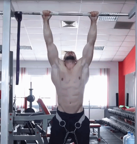 街头健身最常见的训练器材是单双杠,其中引体向上是最基础的动作。看似简单的动作,但却是一项多关节复合运动,需要全身大部分肌肉参与,不仅考量力量,同时也考量身体的综合能力。引体向上对体重大的人来说更难,而Vitaliy Feschuk却可以负重120公斤。