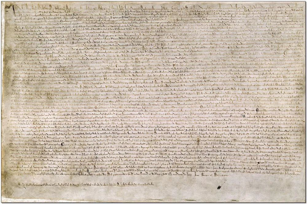 1215年写在羊皮上的英国大宪章也提到这句话: