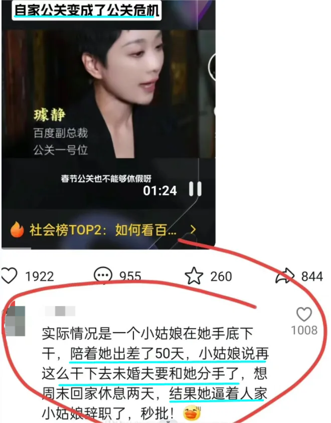 近日引发热议的百度短视频风波,最终以百度前副总裁、公关一号位的璩静的离职收场。