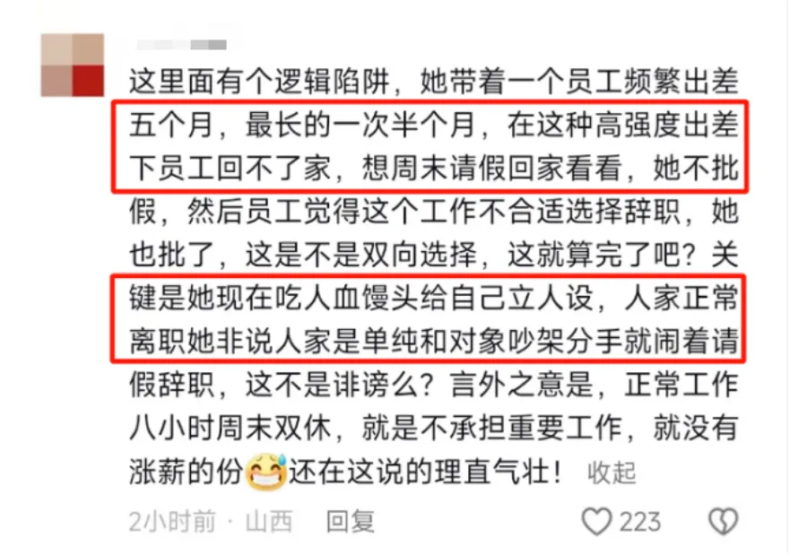 并且表示员工如果离职,自己秒批,自己才不会去关心员工到底是什么原因,到底哭没哭,这不是自己作为主管应该关心的事情,自己不是员工的婆婆,也不是员工的妈,自己只关心结果!