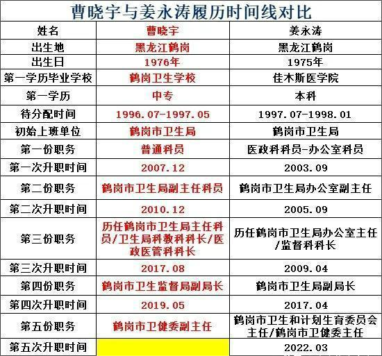 姜永涛比曹晓宇大1岁,之前任卫健委主任,和曹晓宇在鹤岗卫健系统共事长达25年。