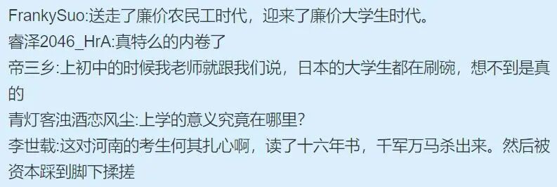 不是说大学生就不能干这些职业,工作“只有分工不同,没有高低贵贱”嘛,凭劳动吃饭无可厚非。